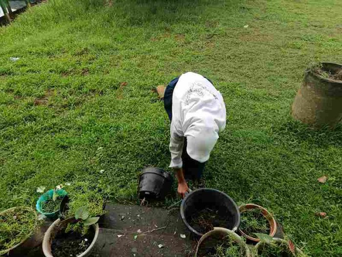 Guru, siswa, serta mahasiswa PLP UIN STS Jambi bersama-sama melaksanakan kegiatan gotong royong membersihkan halaman, menyapu area lapangan upacara, serta menata taman dan ruang kelas. Suasana kebersamaan terlihat jelas ketika seluruh elemen madrasah turun langsung menjaga keindahan lingkungan.